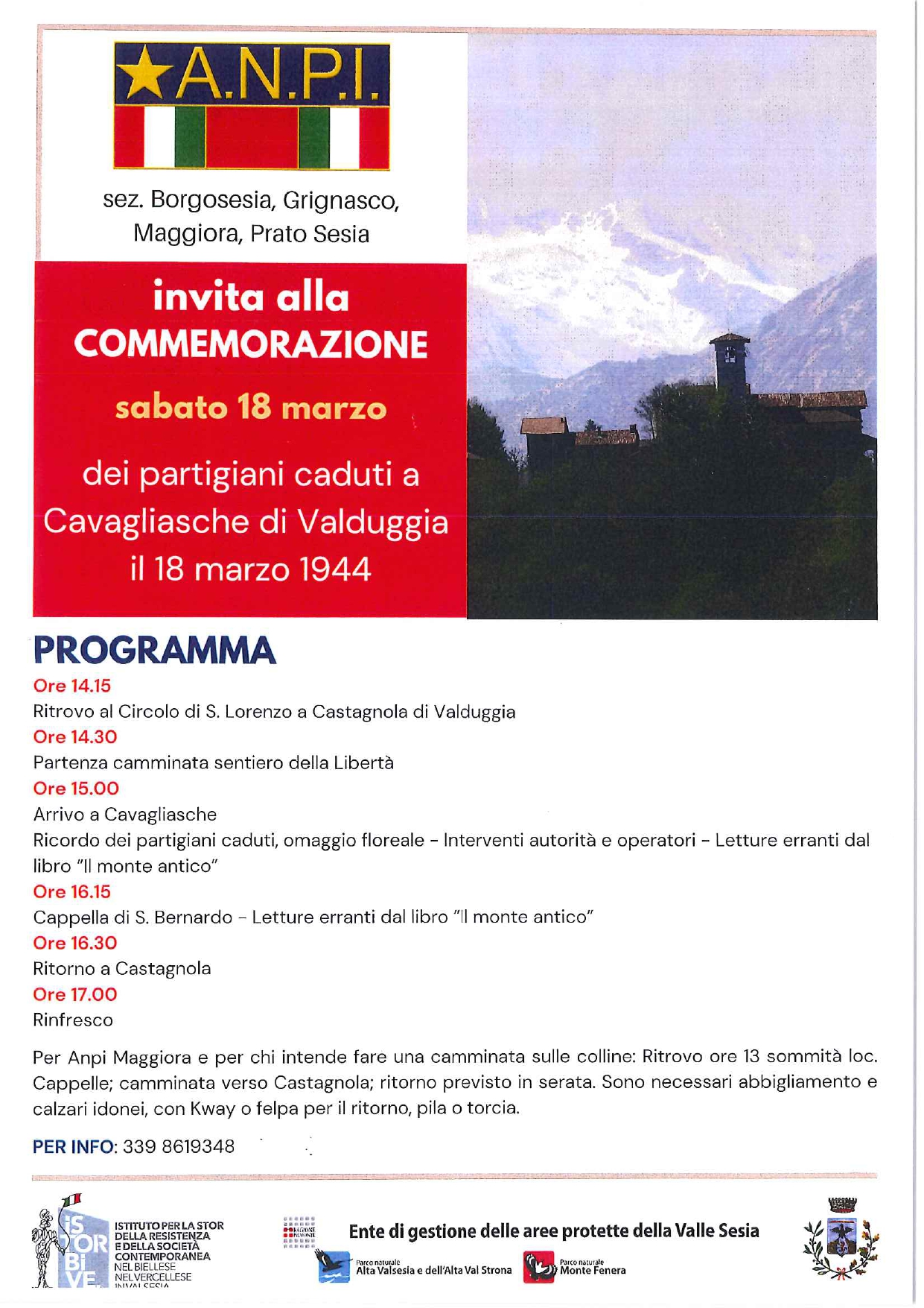 Invito alla commemorazione dei partigiani caduti a Cavagliasche di Valduggia del 18 marzo 2023